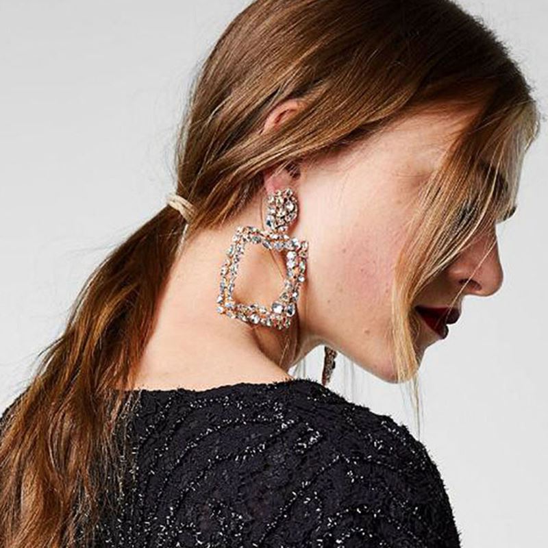 Each pair is adorned with exquisite rhinestones, giving them a glamorous touch that catches the light beautifully. Measuring 40mm in height and 120mm in length, these earrings are lightweight and comfortable for all-day wear.