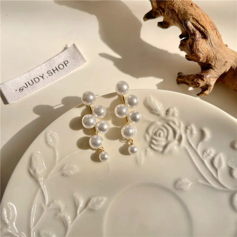 Measuring approximately 4.3cm in length and 1.5cm in width, each earring weighs a light 10g, ensuring comfort throughout the day. The lustrous pearls add a touch of glamour, making them perfect for both casual outings and formal events.