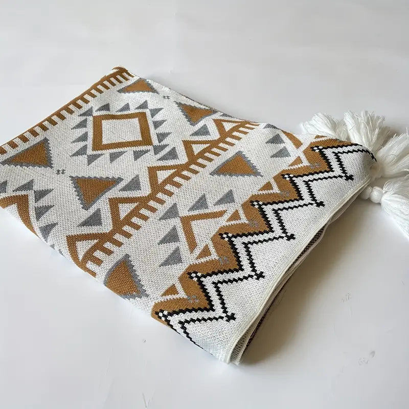 Enhance your home with a blend of comfort and style. Our Bohemian Knitted Jacquard Tassel Throw Blanket is not just a blanket; it's a statement piece that invites warmth and charm into your living spaces.