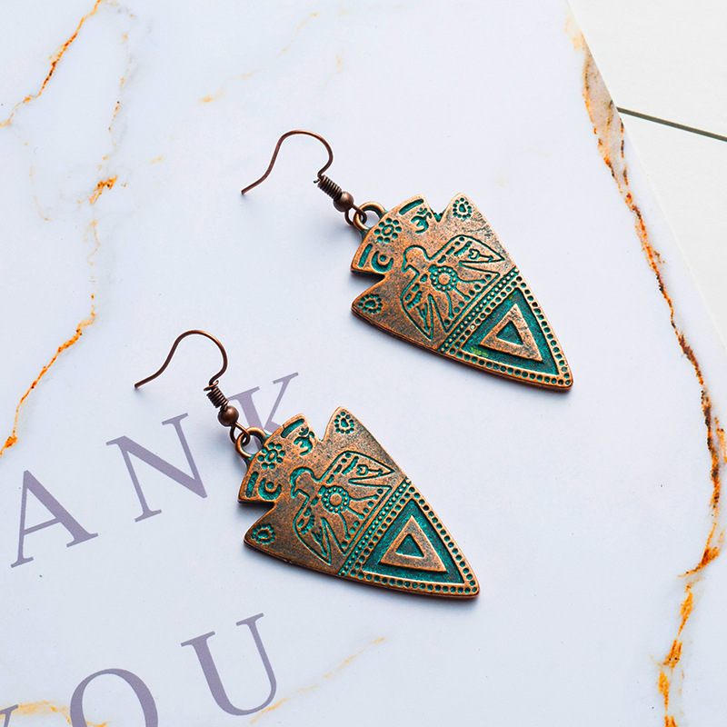 Bohemian Vintage Metal Triangle Pendant Earrings